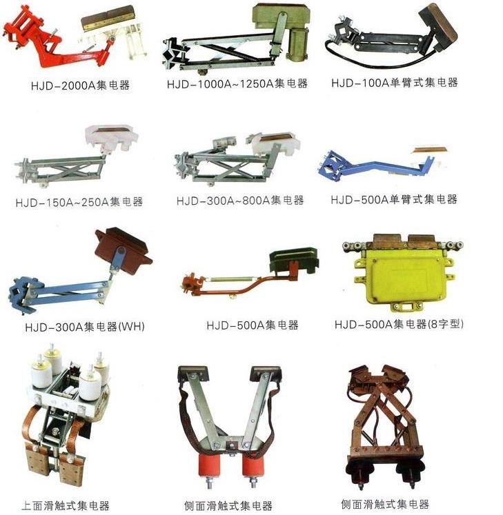HJDX系列集電器是滑觸線系統(tǒng)中集電側(cè)拾取電能的主要裝置之一,它通過集電刷與導(dǎo)軌的滑動(dòng)接觸,將電能直接傳導(dǎo)至用電器,從而實(shí)現(xiàn)系統(tǒng)的移動(dòng)供電。集電器由機(jī)械結(jié)構(gòu)的張力裝置和直接與導(dǎo)軌滑動(dòng)接觸的集電刷兩部分組成,機(jī)械結(jié)構(gòu)的張力裝置決定集電刷與導(dǎo)軌的滑動(dòng)接觸壓力和機(jī)構(gòu)的穩(wěn)定性,集電刷則是導(dǎo)軌滑動(dòng)接觸拾取電能的導(dǎo)體,它的性能和導(dǎo)電質(zhì)量以及材料結(jié)構(gòu)成分的優(yōu)劣,將直接影響整個(gè)系統(tǒng)設(shè)備的安全運(yùn)行質(zhì)量,因此集電器是整個(gè)滑線系統(tǒng)中最主要的部件之一。